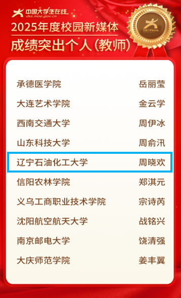 喜报|学院党总支副书记周晓欢荣获教育部中国大学生在线“校园新媒体成绩突出个人” 荣誉