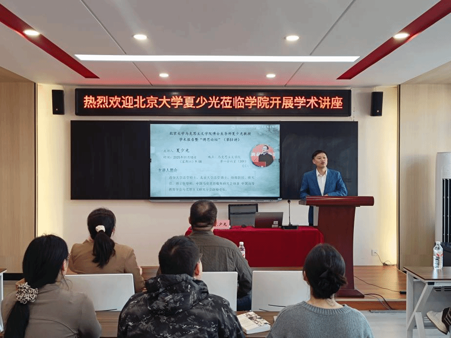 讲座伊始,刘志丹致辞。他对夏少光的到来表示诚挚感谢与热烈欢迎,并详细介绍了夏少光在马克思主义理论研究领域的深厚造诣与丰富经验。他强调,本次讲座旨在以经典著作为根基,帮助与会学子解决在论文开题报告写作中的困惑,助力提升学术研究与写作规范水平。