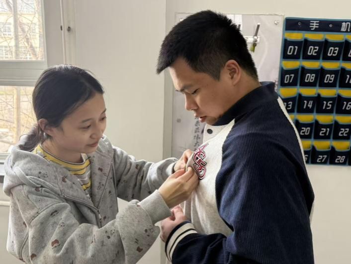 宣誓完毕后,学生干部代表为新团员逐一颁发团徽,一枚枚团徽承载着团组织的期望,也让新团员们感受到了身为共青团员的荣誉与责任。新团员代表余林俊发言,表达了加入团组织的激动心情,并承诺将以团员标准严格要求自己,勤奋学习、勇于担当,以实际行动践行入团誓词。