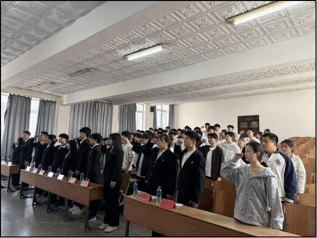 为筑牢青年思想根基,凝聚青春奋进力量,引导广大青年坚定理想信念,4月8日下午,马克思主义学院团委与机械工程学院团委联合举办新团员入团宣誓仪式。机械工程学院团委书记赵梦茁、马克思主义学院团委负责人李一鸣、学生干部代表及新老团员代表百余人参加本次仪式。