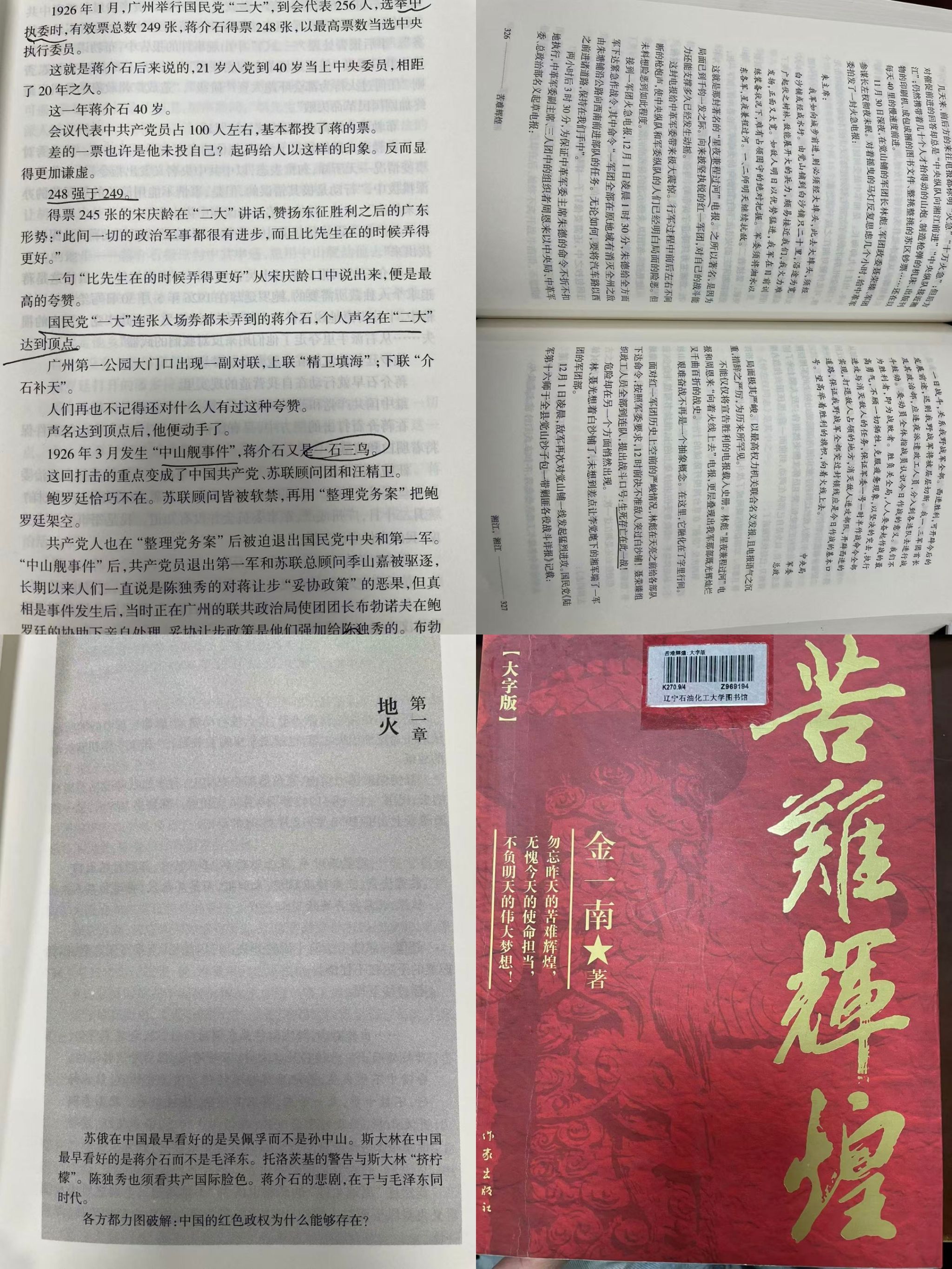 《苦难辉煌》这本书相信大家非但不陌生,还很熟悉。它是金一南教授写的一部“党史”,但却不同于一般的“党史”。归结起来有以下四个方面,也是推荐此书的四个缘由。第一,场面宏大:要想了解党史,就不能仅局限于中国共产党单方面的了解,《苦难辉煌》把中共早期历史放在有共产国际、苏联社会主义革命、日本军国主义兴起以及包括共产党、国民党这样一个大的场面去描写,从有重大影响的政治力量、政治事件、政治人物入手,对20世纪二三十年代的中国旧社会错综复杂、恢宏壮阔的历史进程,进行了全景式的揭示和剖析。第二,人物众多:包括像老一辈的无产阶级革命家毛泽东、邓小平、刘伯承、贺龙,包括其他阵营的,还包括共产国际李德,军阀的一些人物,整本书的人物有300多个。这300多个人物,金教授有时只是寥寥几段甚至是寥寥数笔,就把一个人的整个发展历程、立场以及他在关键事件中所起的作用勾勒得清清楚楚,而不是一个名字在某一事件中一笔带过。第三,视角独特:金教授不是从写大事入手,而是从小事入手,一点一点往下挖掘,从而展开一个宏大的事件,得出一个宏大的结论。比如遵义会议、长征出发这类标志性节点,不是直接写,而是先抛出“红色政权为什么能够存在”这一悬念式设问,紧接着把镜头对准永田铁山、冈村宁次等日本士官三三两两的留欧聚会,或写蒋介石日记里一句看似随意的牢骚,甚至写红军掉队士兵如何跟老乡借粮。这些“边角料”式细节,在传统史书里往往被一笔带过,却被金一南教授拿来当“入口”,让我们读者先闻到硝烟味,再看到大格局。第四,文笔生动:就像《环球人物》杂志对《苦难辉煌》的评价一样,“人们早习惯了党史是一张严肃的面孔,到了《苦难辉煌》这儿,变得如此鲜活和生动。” 比如“毛泽东、蒋介石二人,心头皆有主义,手中皆有枪杆,历史选择他们代表各自的阶级和政党,用手中的枪杆和心中的主义,用对历史的感触和对未来的憧憬,在现代中国猛烈撞击,用一场又一场生死拼杀演出一幕又一幕威武雄壮的活剧来”很难想象,这些话出自一部“党史”。
