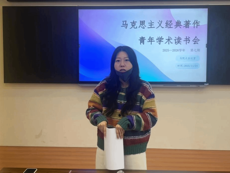 为深入推进青年学子理论素养提升,夯实学术研究基础,营造求真务实的学术氛围,马克思主义学院于11月24日在301会议室成功举办2025—2026学年第七期青年学术读书会。活动由2024级研究生张骁主持,特邀马克思主义学院教师尹思迪担任点评嘉宾,2025级全体研究生及部分2024级研究生参加此次读书会。