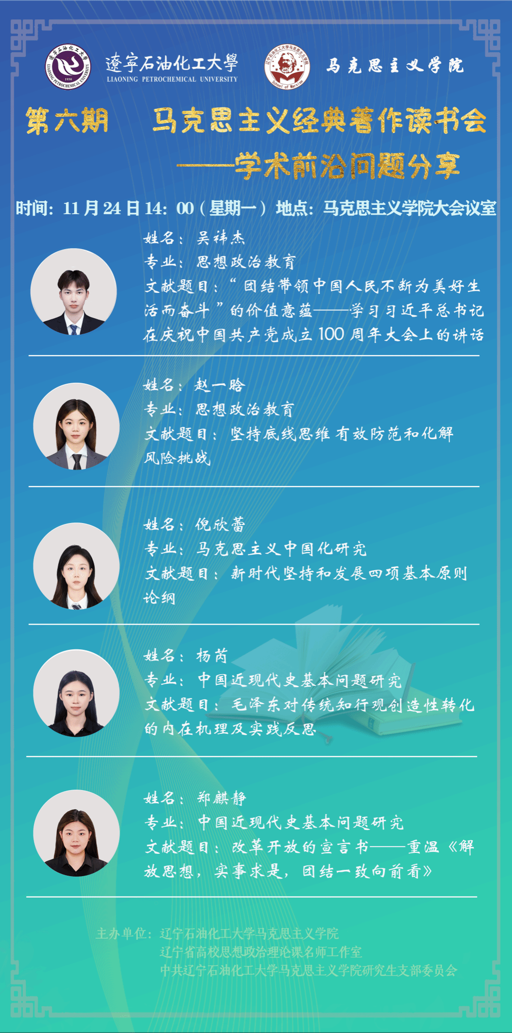 本次读书会为青年学子搭建了思想碰撞与学术交流的优质平台,有效助力同学们在文献研读与观点探讨中深化理论认知、锤炼学术思维。未来,学院将持续优化读书会活动形式,丰富学术交流内容,引导广大青年在深耕学术中坚定理想信念,在理论实践中勇担时代使命,让青春在追求真理的道路上绽放光彩。(撰稿人:邵宏珠 赵一晗 校对人:刘志丹 审稿人:刘淑艳/张雪 摄)