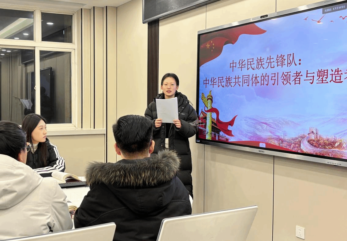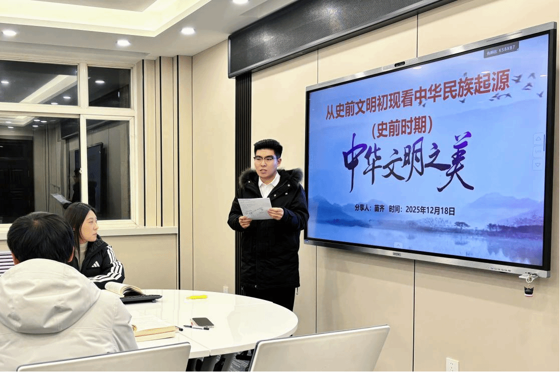 活动伊始,小组成员鲁淼首先进行开场引言。她回顾,在上一次活动中,大家共同研读分享了铸牢中华民族共同体意识的深刻内涵,深刻领会其承载的重要时代价值。本次活动将进一步追本溯源,走进中华民族五千多年的文明历程,共同探寻中华文明多元一体格局的形成脉络与发展逻辑,从而进一步树立正确的中华民族历史观。随后,小组五名成员依次围绕指定篇章内容展开分享,分别阐述了不同历史时期中华民族共同体形成与发展的重要进程。