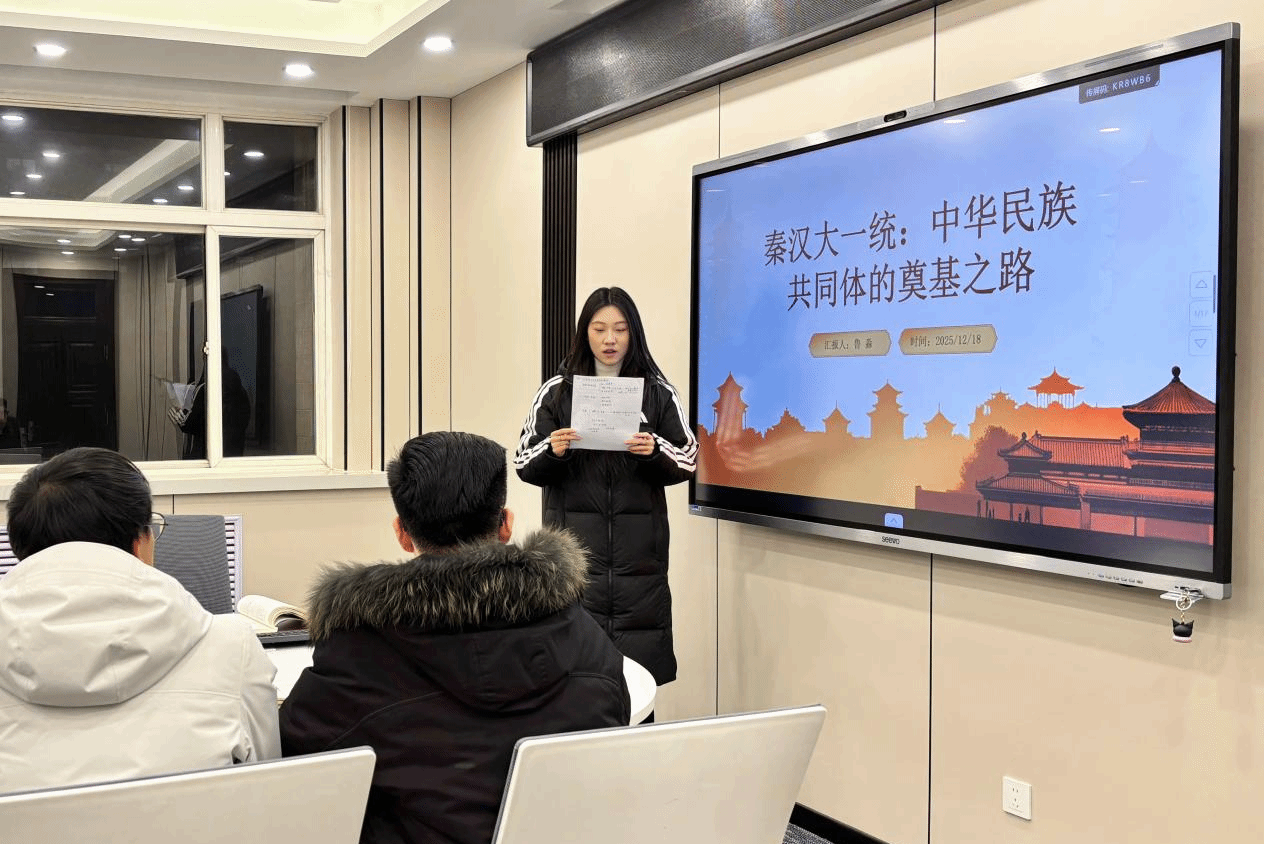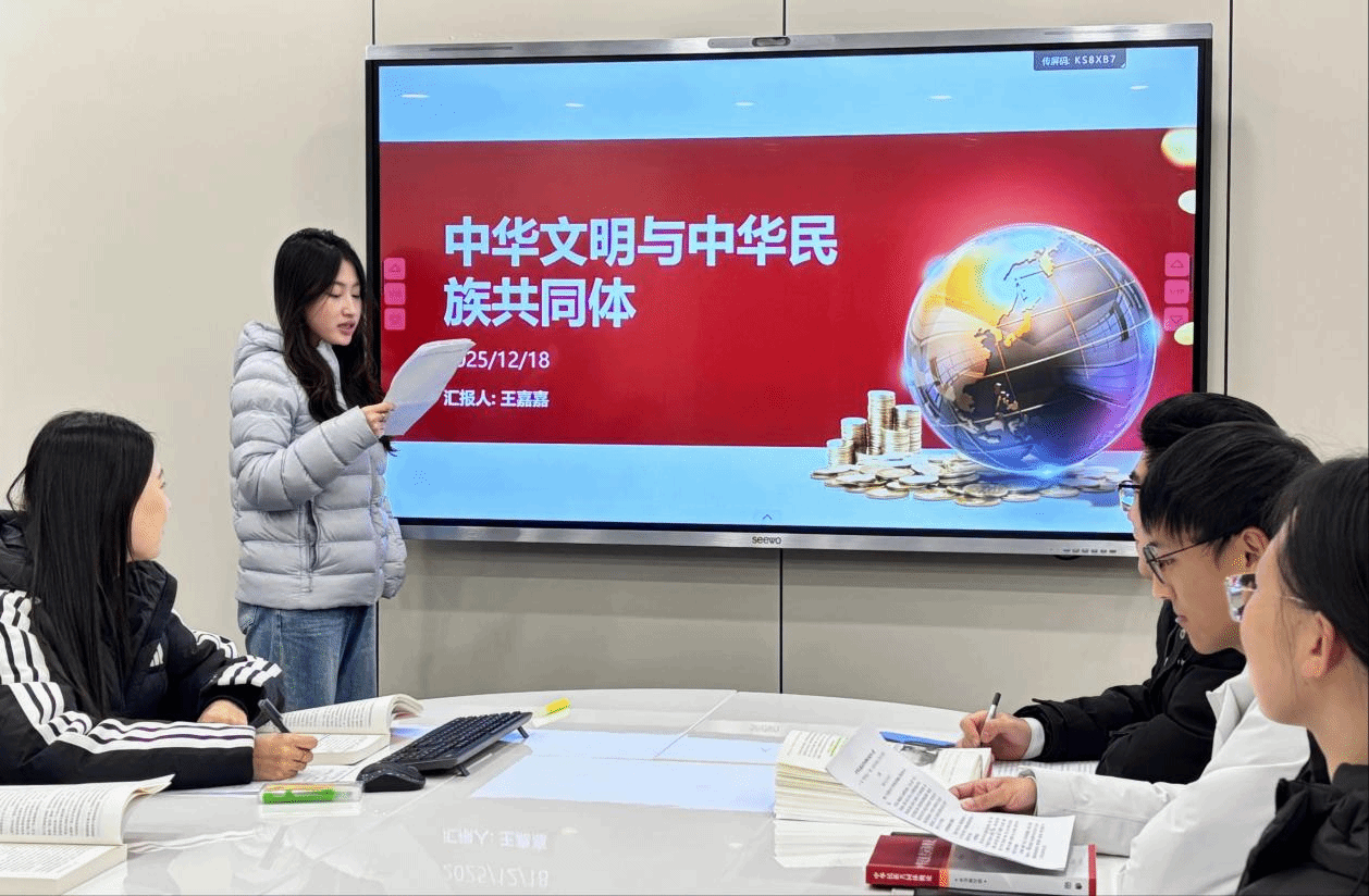12月18日,中国高等教育学会马克思主义研究分会2025年度“马克思主义经典著作研读”资助计划——辽宁石油化工大学“籽籽同心”读书小组,在马克思主义学院302教室成功举办了第二次读书活动。此次活动以“溯源·固本培元——树立正确的中华民族历史观”为主题,围绕《中华民族共同体概论》第二讲至第五讲内容展开,通过领读分享、研讨交流,对中华民族共同体形成的历史根源进行追溯,进一步理解中华民族共同体形成的发展脉络。活动同步开设腾讯会议,读书小组全体成员线下参会。