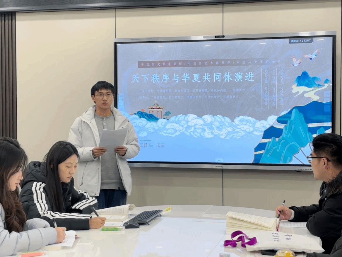 领读分享结束后,小组成员围绕不同历史时期中华民族共同体的演进脉络,展开深入总结与交流研讨。有成员提出,五位成员的分享中,“多元一体”这一关键词被反复提及、彼此印证,清晰地勾勒出中华民族共同体从起源到成形的历史轨迹。这一分享成果共同指向一条鲜明的历史逻辑:中华民族共同体的形成,并非单一文化的线性扩张,而是一个“多元”共存、“一体”凝聚的动态过程。这一过程始终伴随着对不同文化类型的尊重、吸收与融合,体现着“和而不同”“兼容并蓄”的中华智慧。“多元一体”不仅是历史的必然规律,也是中华民族生生不息、持续发展的活力源泉。