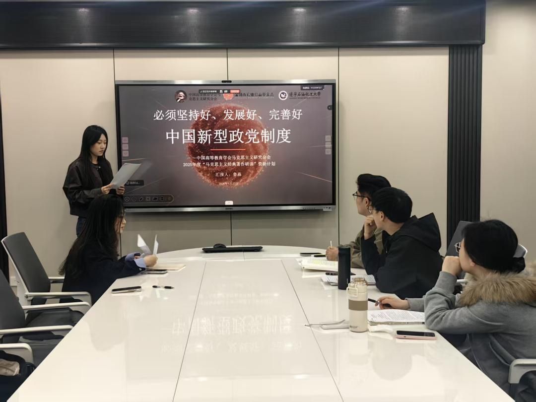 4月23日,恰逢第31个世界读书日,中国高等教育学会马克思主义研究分会2025年度“马克思主义经典著作研读”资助计划——辽宁石油化工大学“籽籽同心”读书小组,在马克思主义学院302教室成功举办第七次线下读书活动。本次活动以“悟透·统战法宝”为主题,围绕《习近平总书记关于做好新时代党的统一战线工作的重要思想学习读本》序章至第四讲内容展开,通过五位同学的深度领读与互动研讨,系统梳理了新时代统战工作的根本指针、明确了要充分发挥统一战线的重要法宝作用就必须解决好人心和力量问题、要正确处理好一致性和多样性关系、坚持好发展好完善好中国新型政党制度的历史逻辑与实践路径。活动同步开设腾讯会议,读书小组全体成员线下参会。