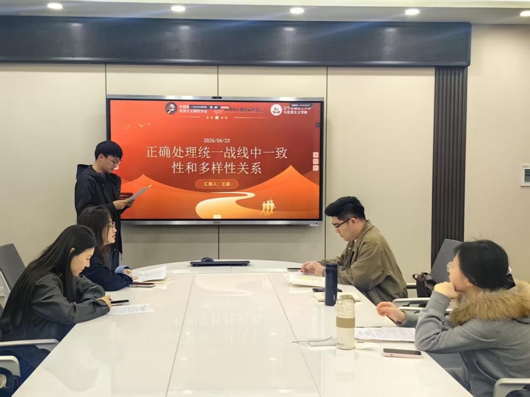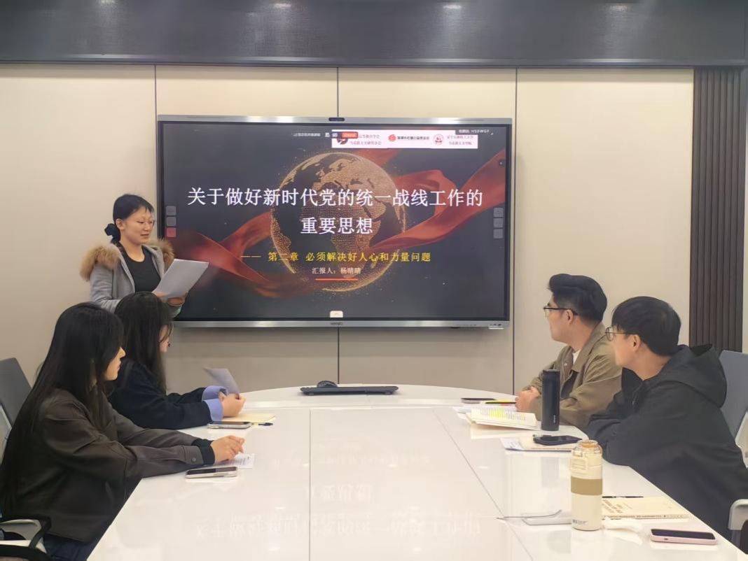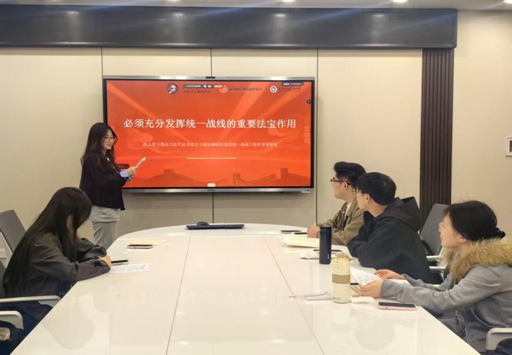 活动伊始,小组成员王涵进行开场引言。他提出本次活动聚焦新时代统一战线工作的理论内涵与实践要求,围绕《习近平总书记关于做好新时代党的统一战线工作的重要思想学习读本》序章至第四讲内容,探讨统一战线如何在凝聚人心、汇聚力量中发挥重要法宝作用,并进一步把握一致性和多样性的辩证关系、中国新型政党制度的历史逻辑与实践路径。随后,五名同学依次围绕指定篇章展开分享。